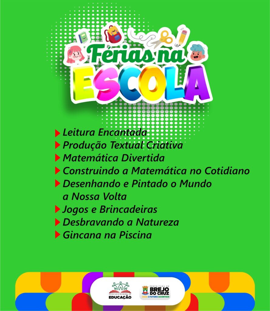 Iniciativa da Prefeitura Municipal de Brejo do Cruz, através Secretaria de Educação, promete transformar as férias escolares em uma experiência inesquecível para os estudantes da rede municipal.